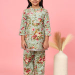 A Line Style Cotton Fabric Sea Green Color Printed Kurta With Palazzo