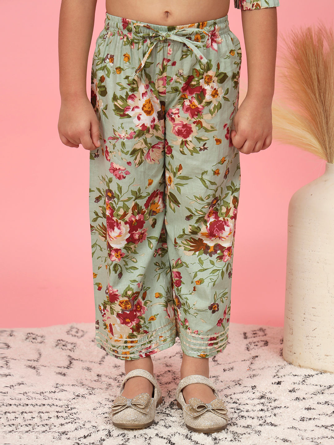 Description - A Line Style Cotton Fabric Sea Green Color Floral Printed Kurta And Palazzo With Gotta Lace Work