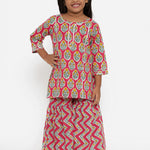 A Line Style Cotton Fabric Pink Color Printed Kurta With Sharara