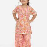 Description - A Line Cotton Fabric Beige Color Floral Printed Kurta And Pyjama With Goat Work
