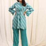 Straight Style Silk Fabric Green Color Kurta And Bottom