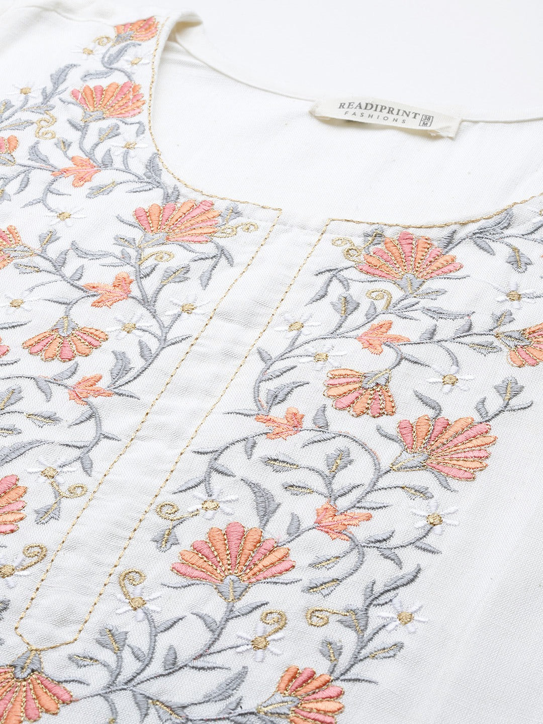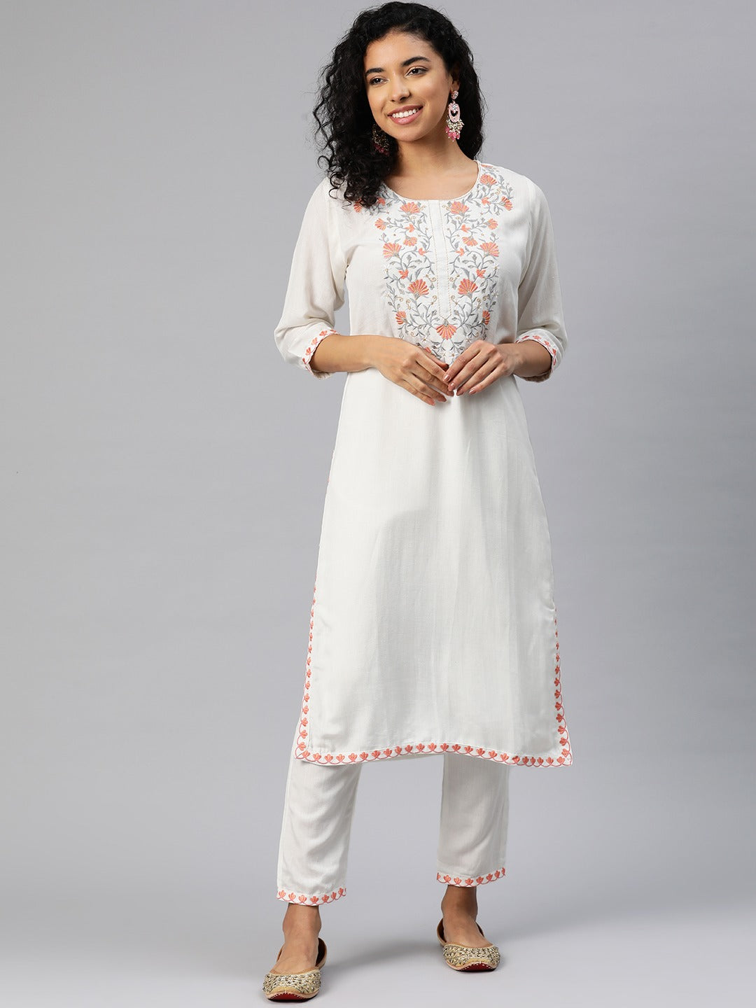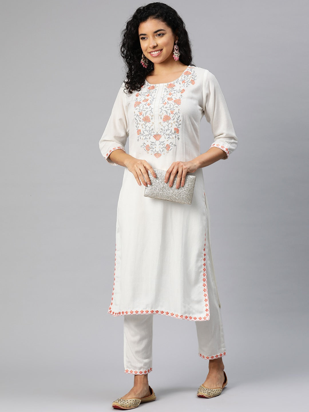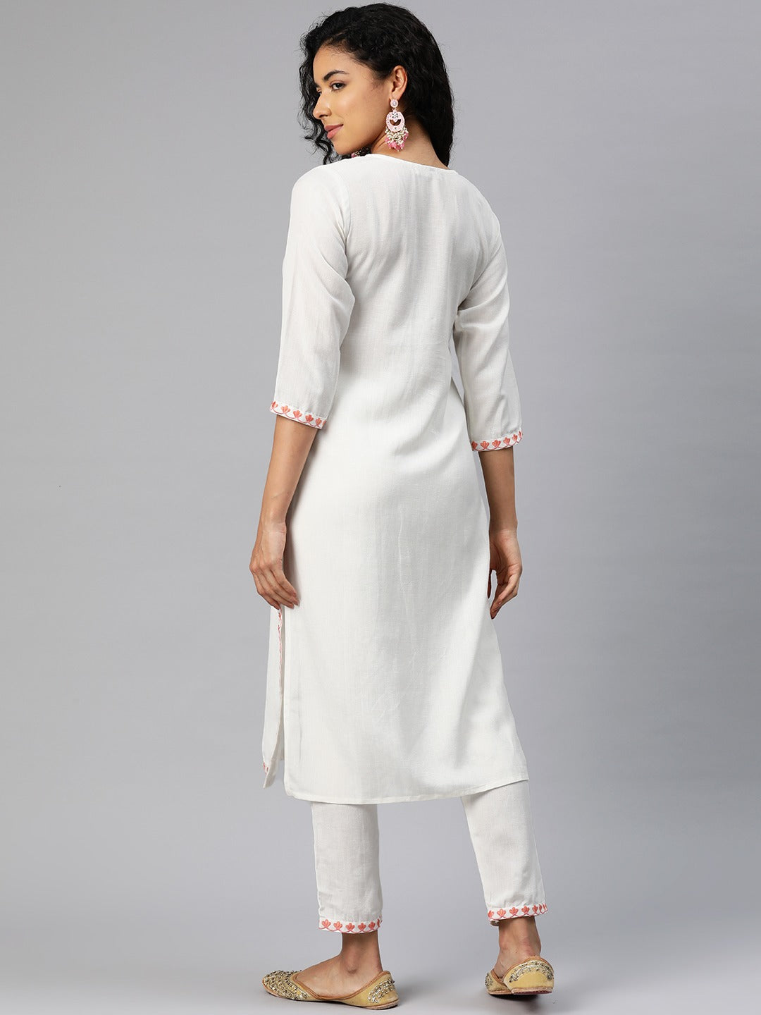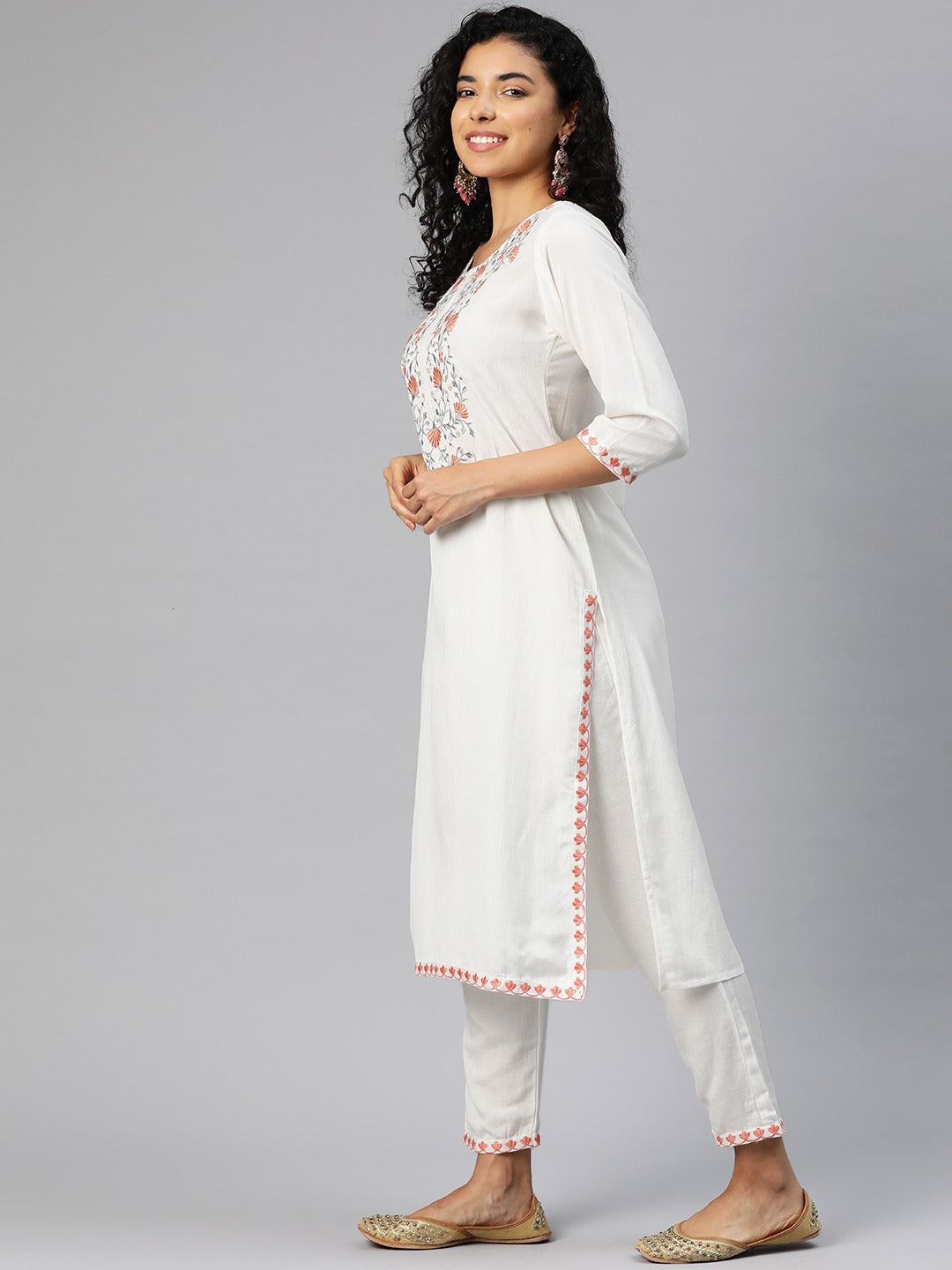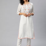 Straight Style Rayon Fabric White Color Kurta With Bottom