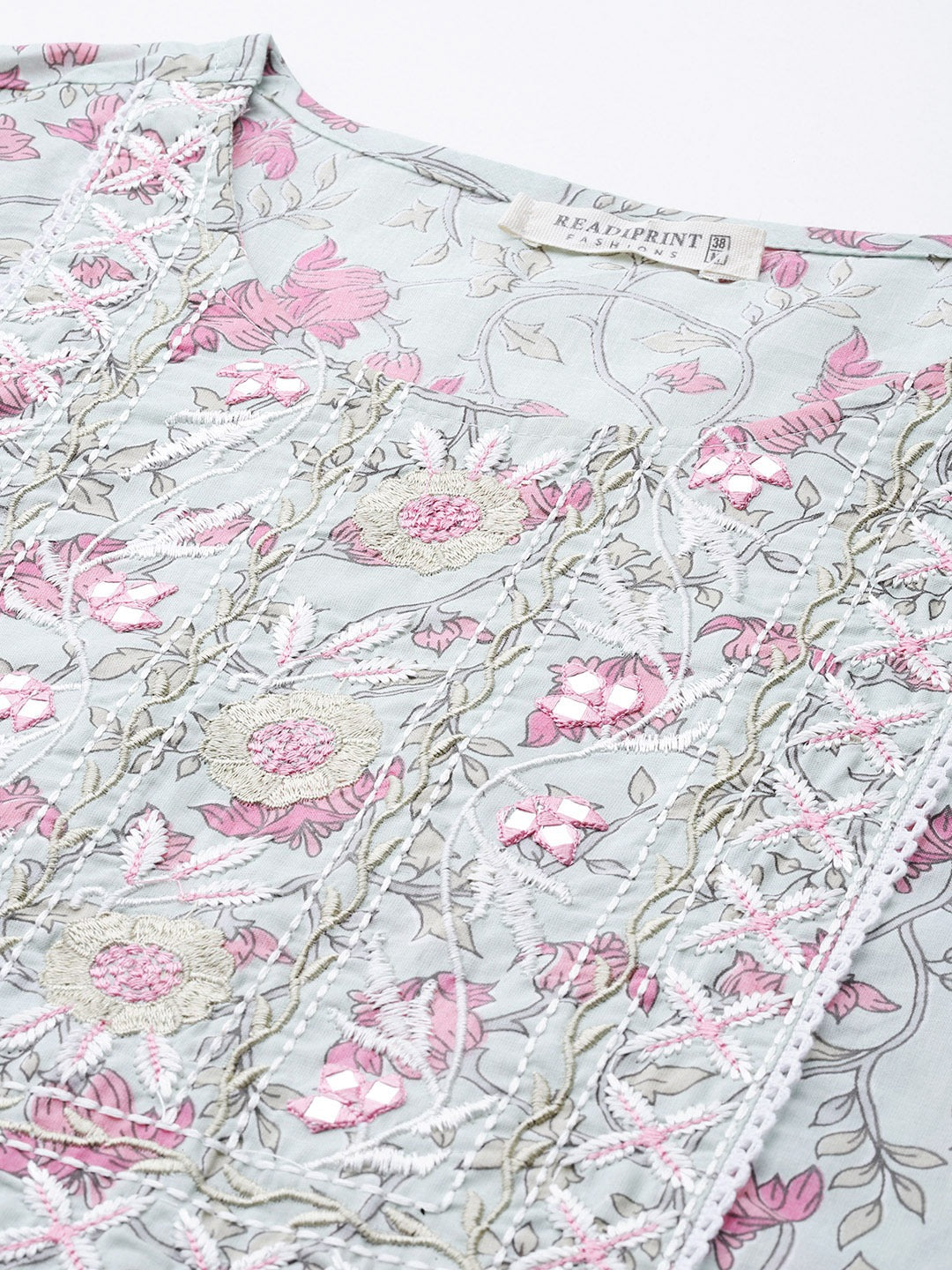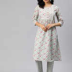 Straight Style Cotton Fabric Green Color Kurta And Bottom