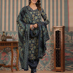 Straight Style Cotton Fabric Blue Color Kurta And Bottom With Dupatta
