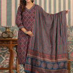 Straight Style Cotton Fabric Maroon Color Kurta And Bottom With Dupatta