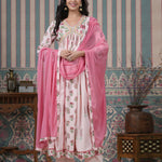 Flared Style Cotton Fabric Pink Color Kurta And Bottom With Dupatta
