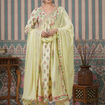 Flared Style Cotton Fabric Green Color Kurta And Bottom With Dupatta