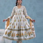 Flared Style Cotton Fabric Cream Color Kurta And Bottom With Dupatta
