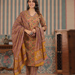 Straight Style Cotton Fabric Mustard Color Kurta And Bottom With Dupatta