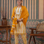 Straight Style Cotton Fabric Mustard Color Kurta And Bottom With Dupatta