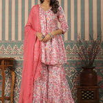 Flared Style Mulmul Cotton Fabric Pink Color Kurta And Sharara With Dupatta
