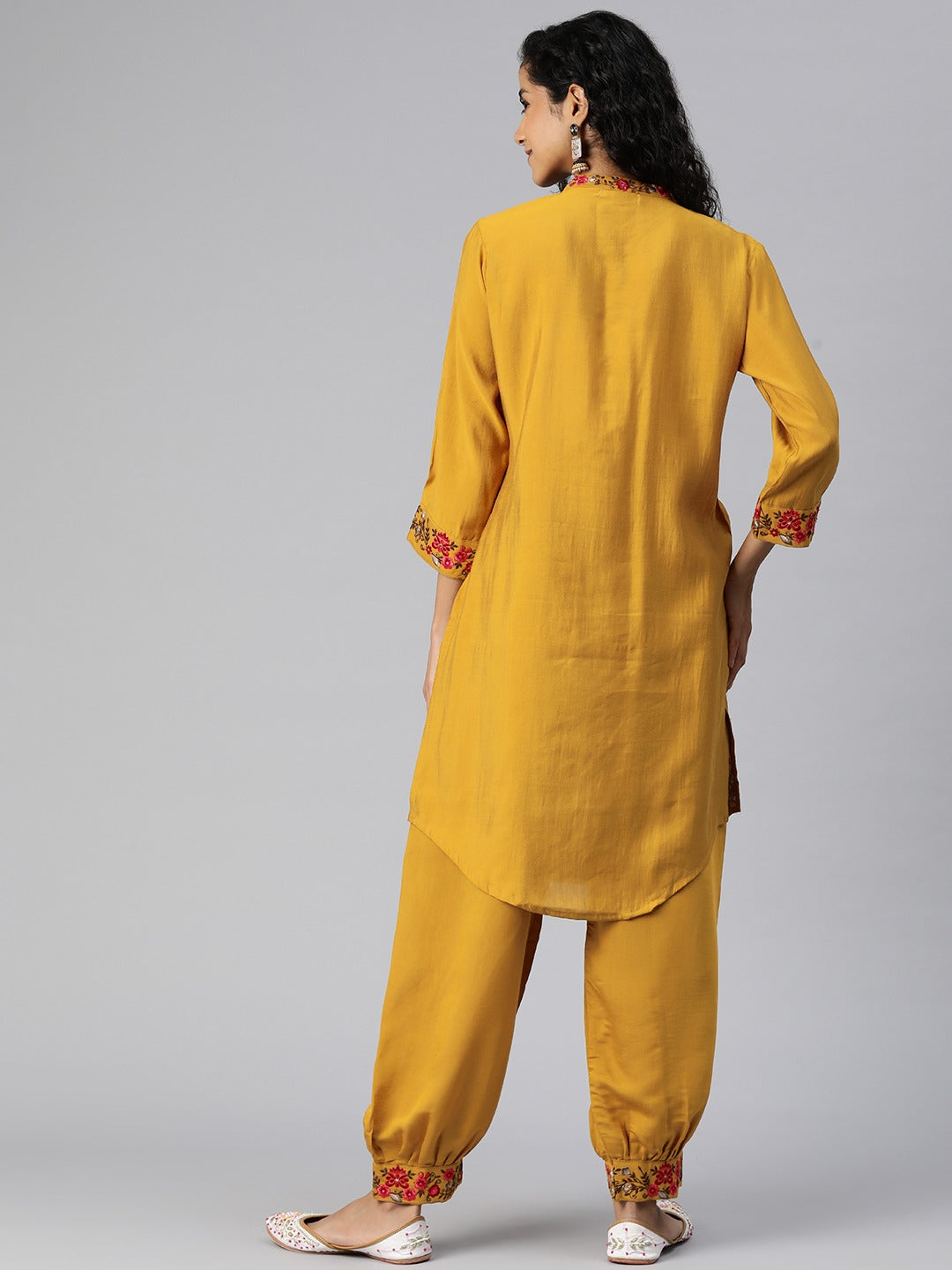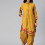 Straight Style Silk Fabric Mustard Color Kurta And Bottom