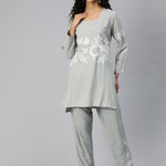 Straight Style Rayon Fabric Grey Color Kurta And Bottom