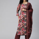 Straight Style Cotton Fabric Burgundy Color Kurta And Bottom With Dupatta
