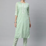 Straight Style Cotton Fabric Green Color Kurti Bottom