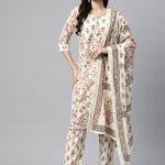 Straight Style Cotton Fabric Pink Color Kurta And Bottom With Dupatta