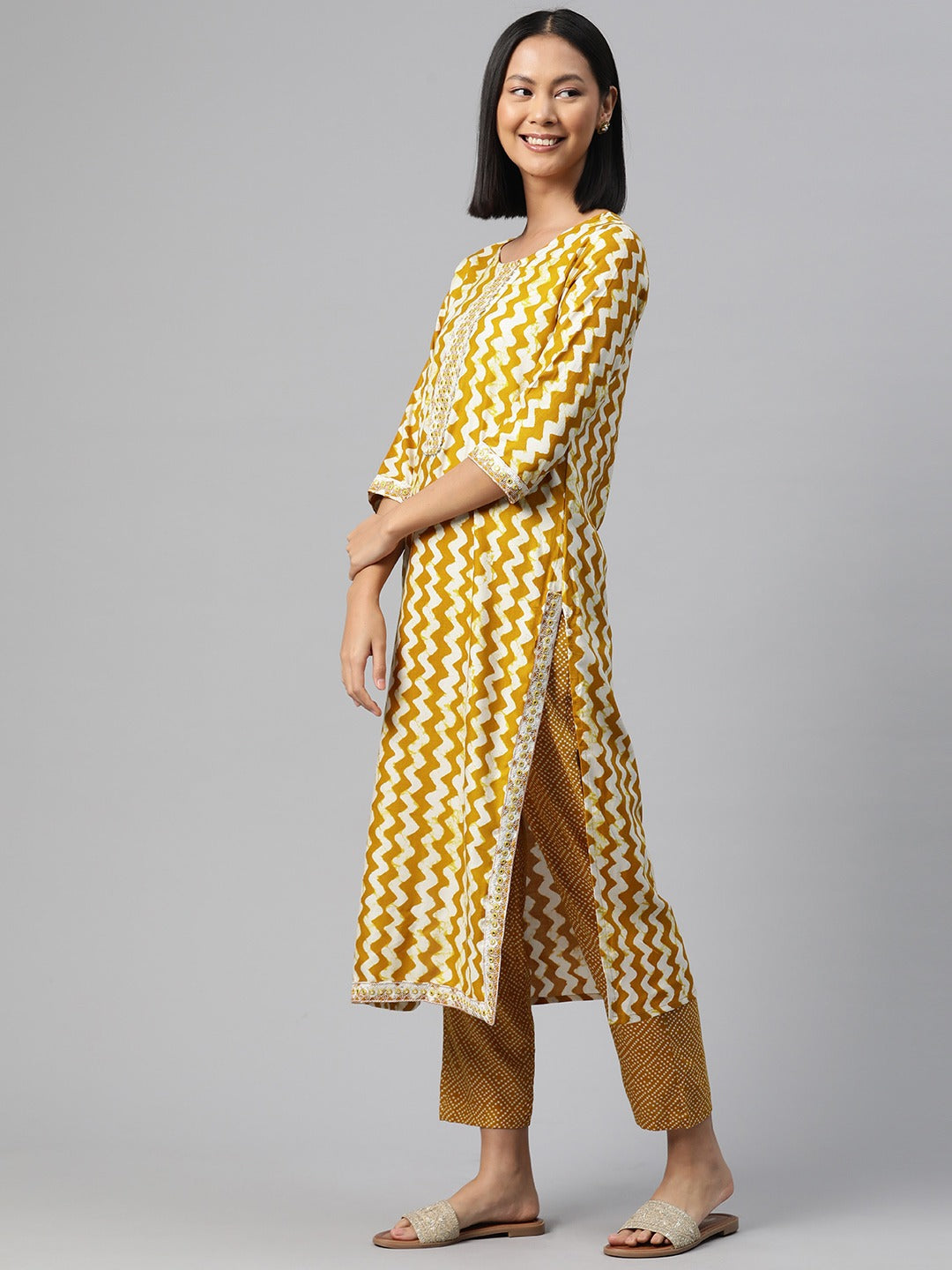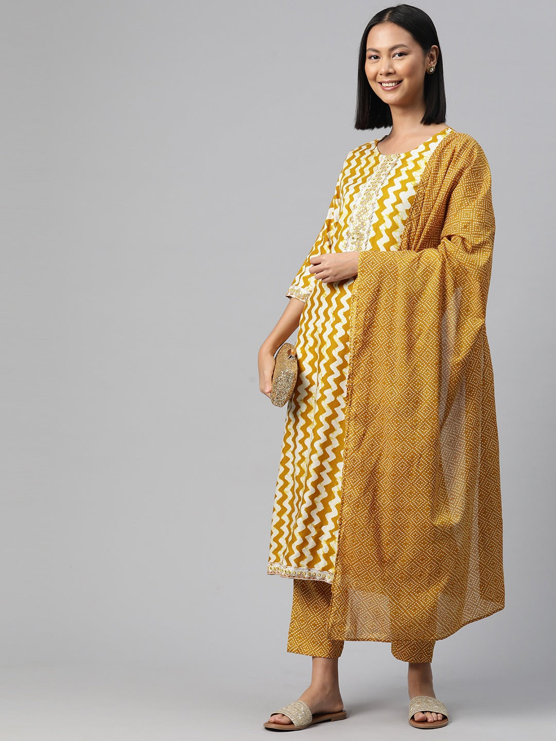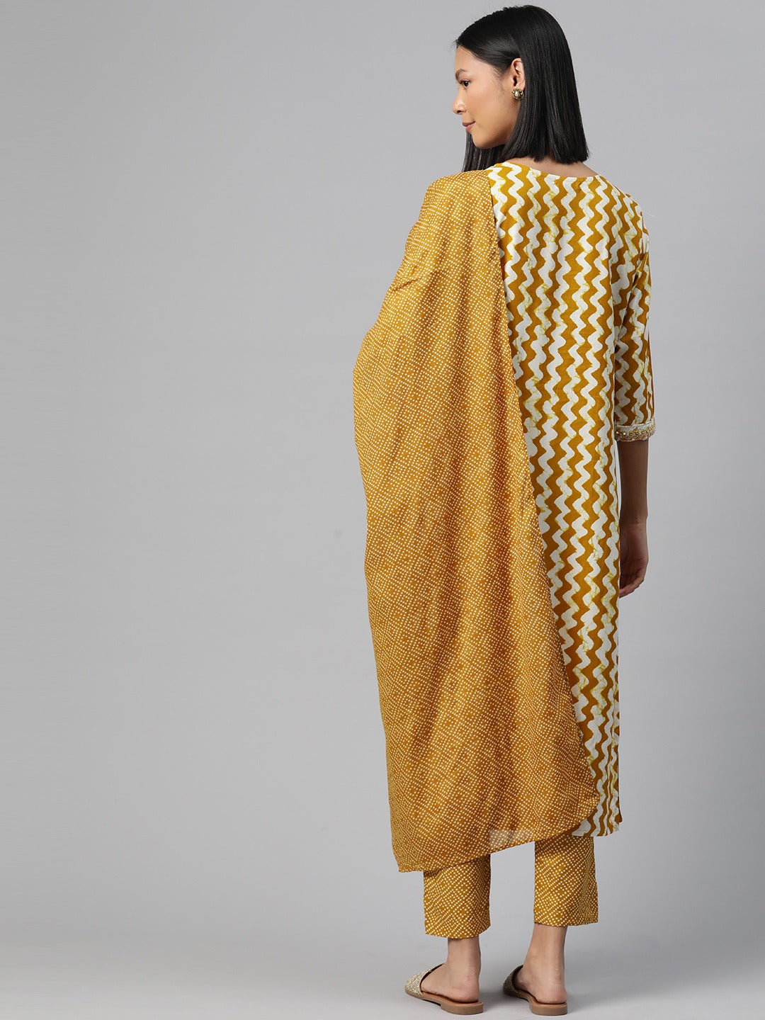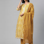 Straight Style Rayon Fabric Mustard Color Kurta And Bottom With Dupatta