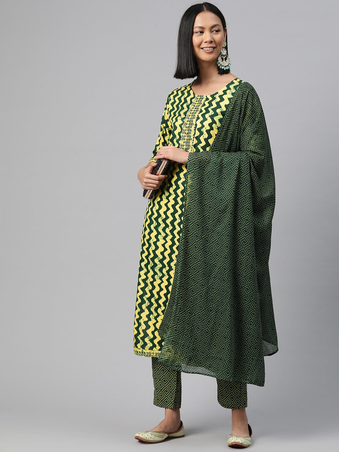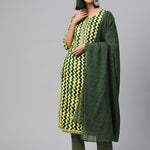 Straight Style Rayon Fabric Green Color Kurta And Bottom With Dupatta