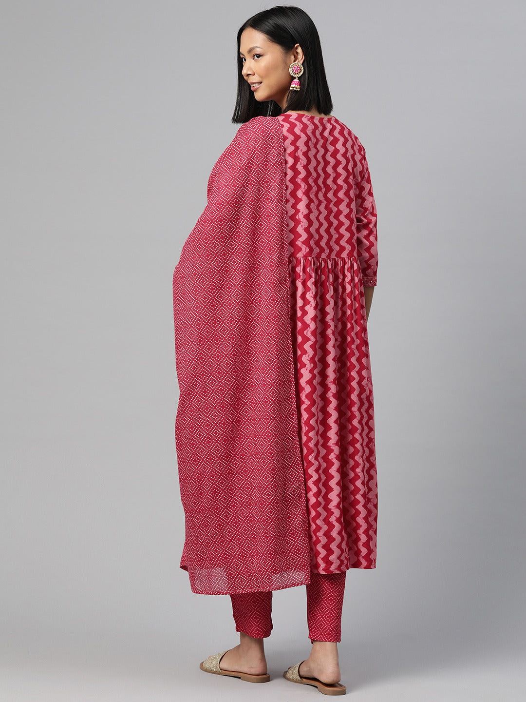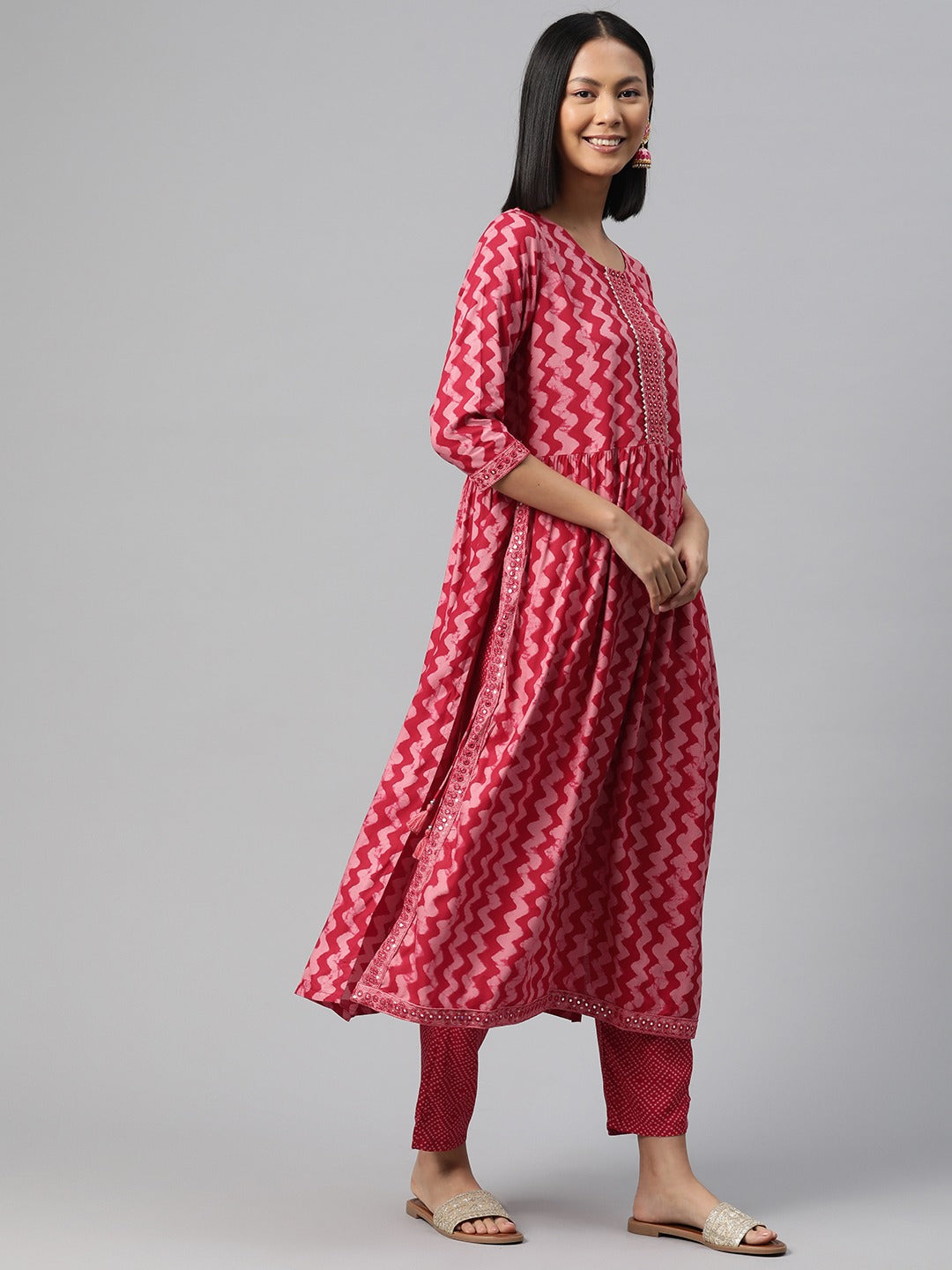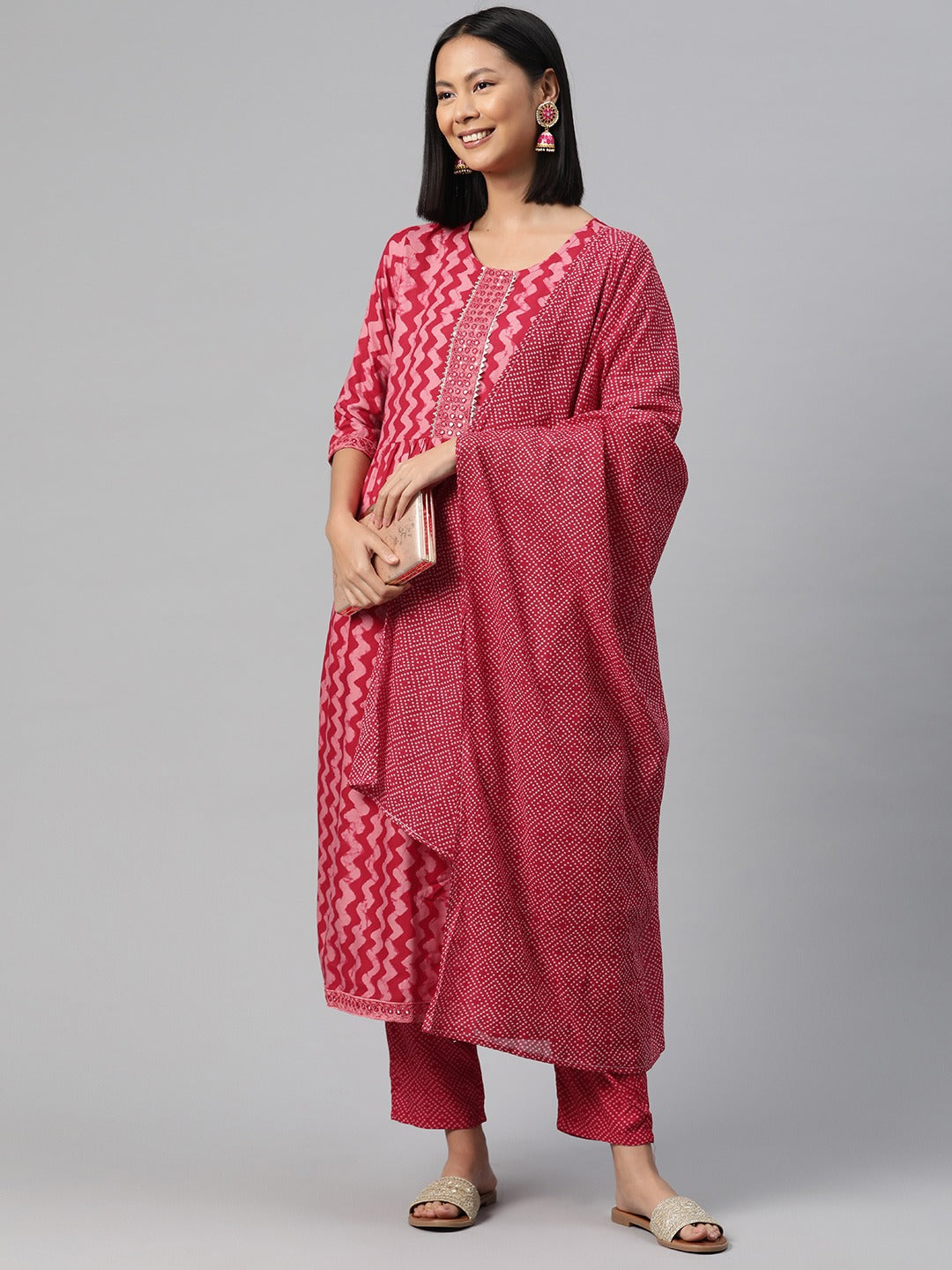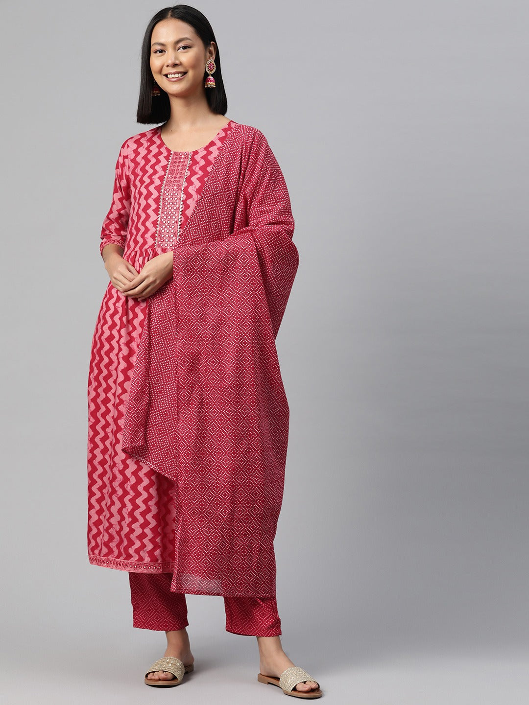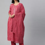 Straight Style Rayon Fabric Pink Color Kurta And Bottom With Dupatta