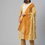 Straight Style Cotton Fabric Yellow Color Kurta And Bottom With Dupatta