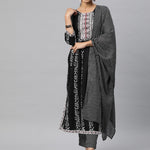 Flared Style Cotton Fabric Black Color Kurta And Bottom With Dupatta