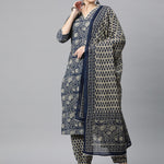 Cotton Floral Straight Kurta Salwar With Dupatta