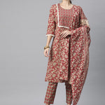 Cotton Foil Print Straight Kurta Pant And Dupatta