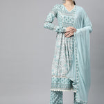 Cotton Floral Anarkali Kurta Salwar With Dupatta