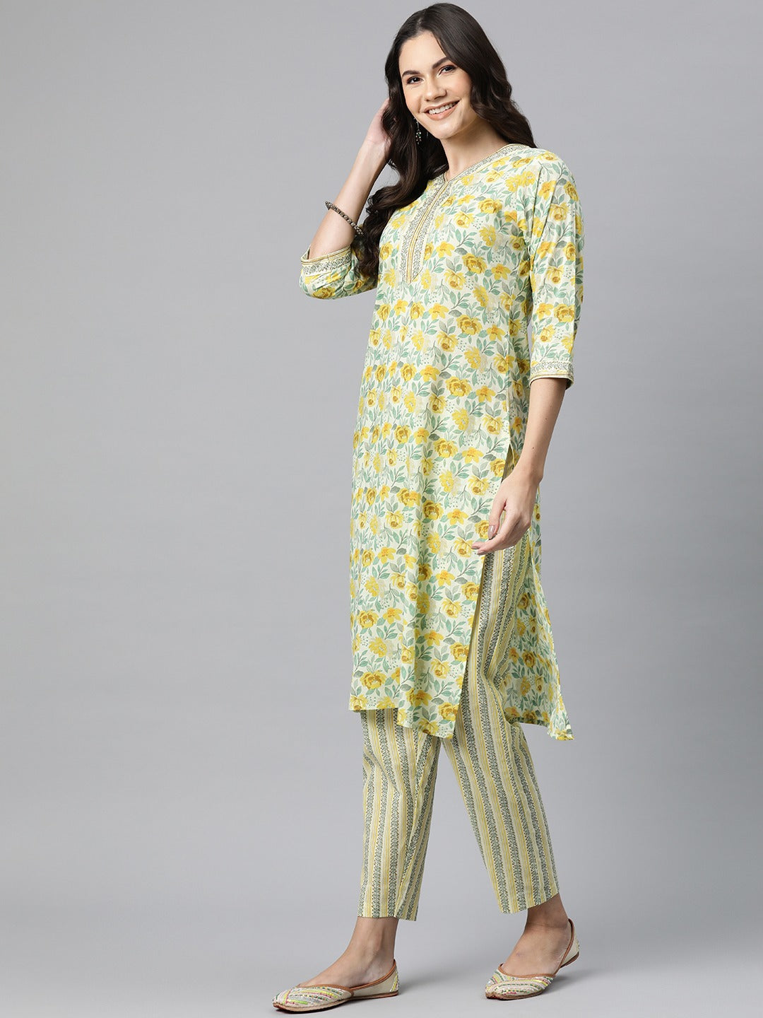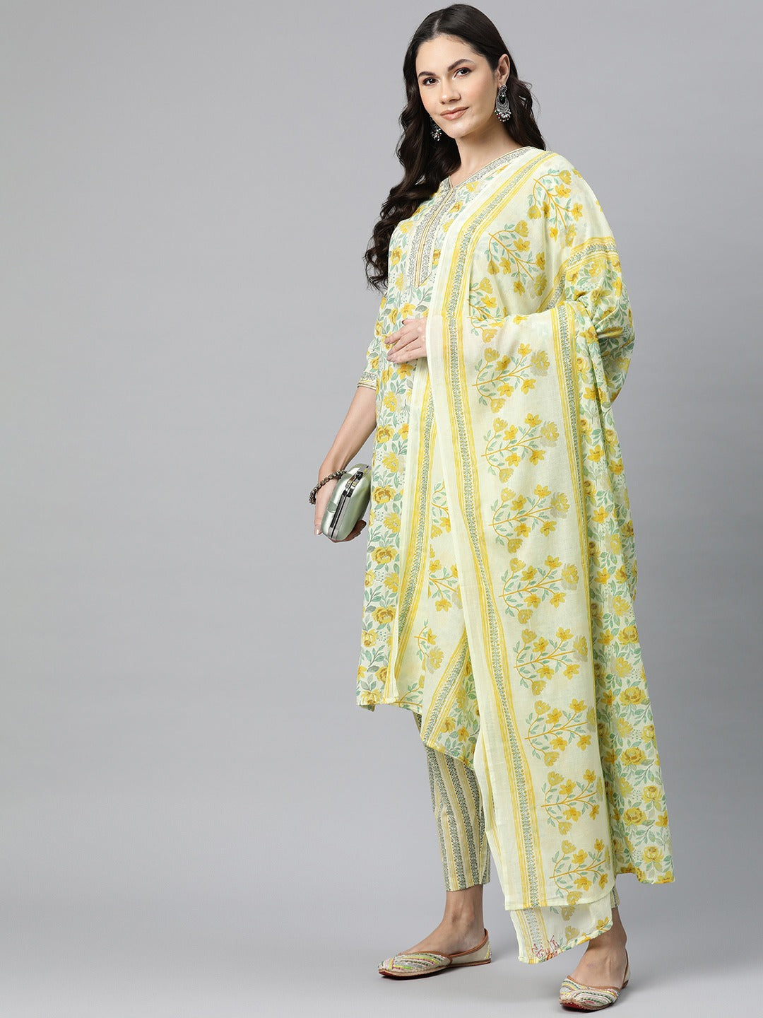 Cotton Floral Straight Kurta Pant And Dupatta
