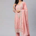 Pakistani Style Organza Fabric Peach Color Kurti With Bottom And Dupatta