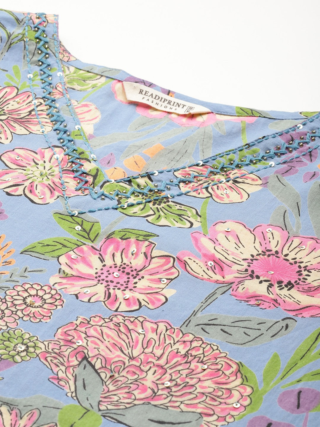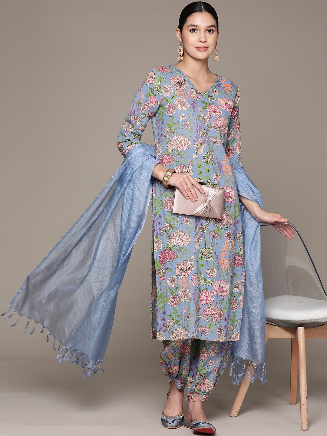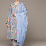 Straight Style Cotton Fabric Grey Color Kurta And Bottom With Dupatta