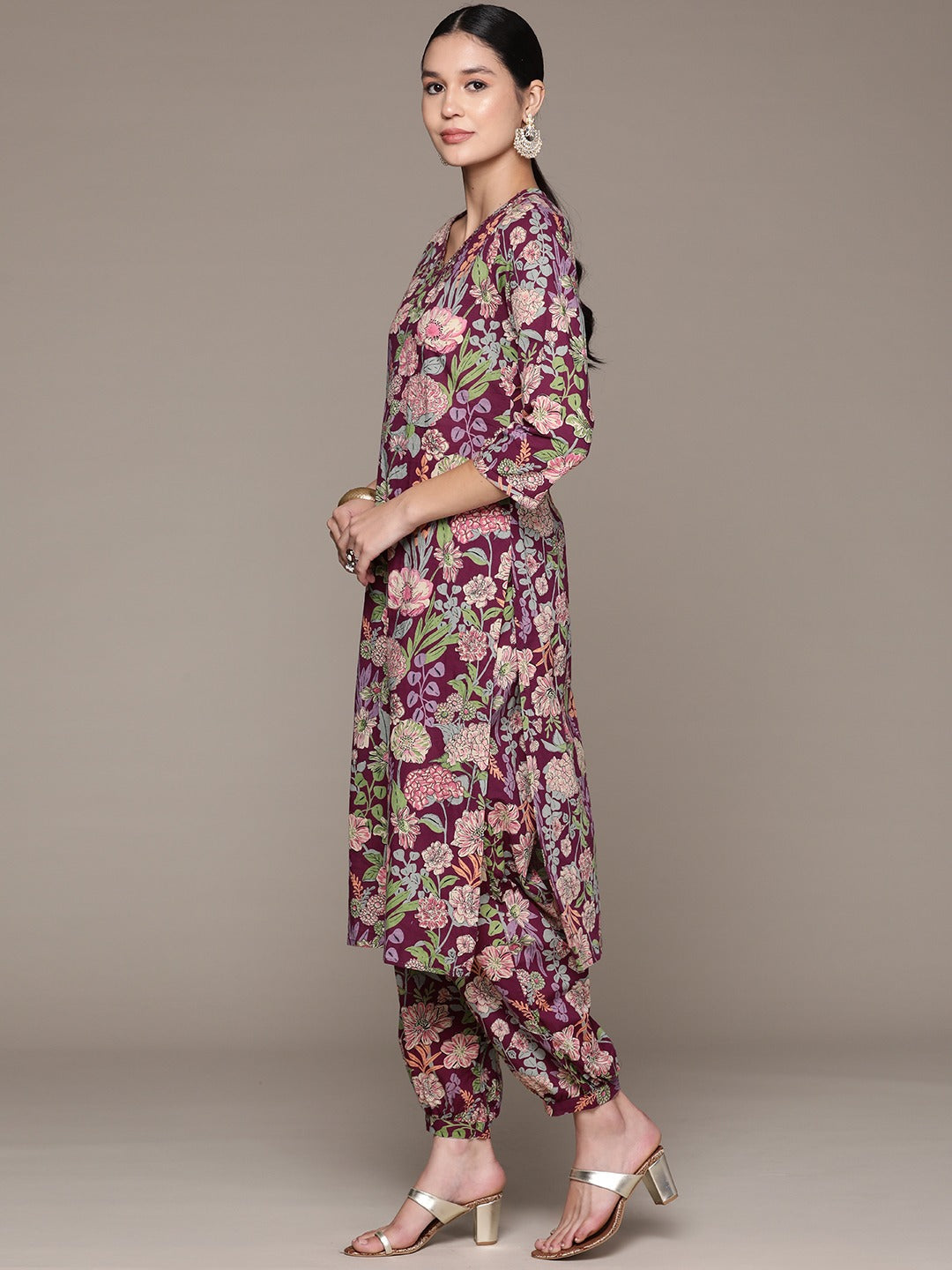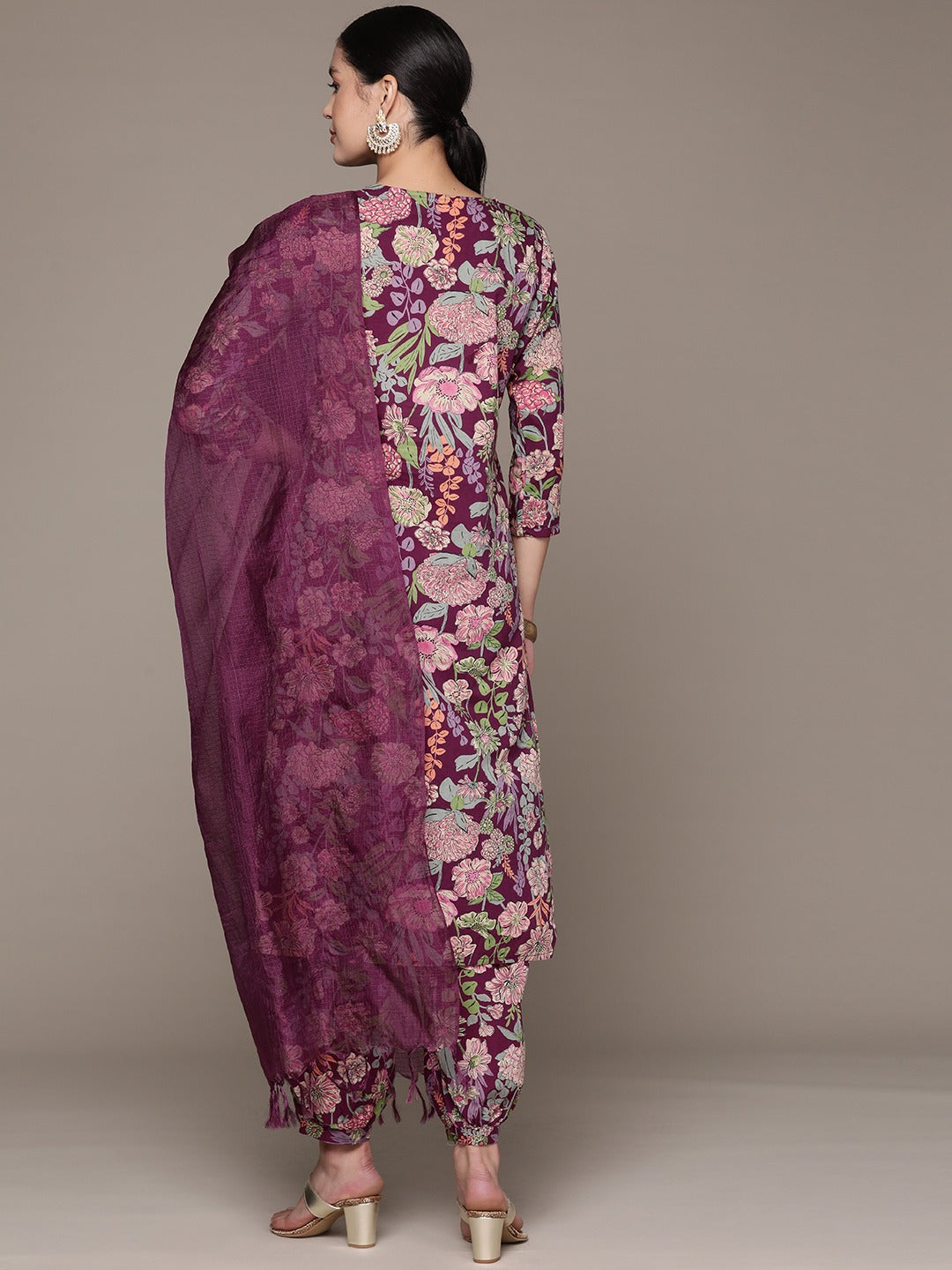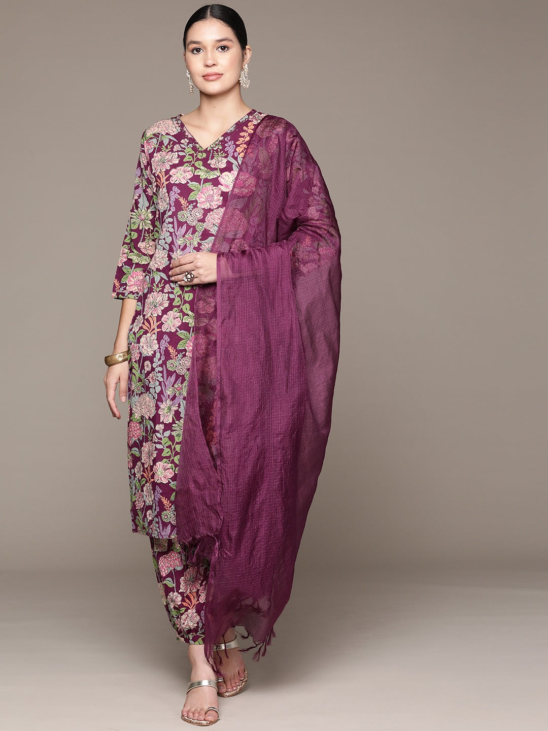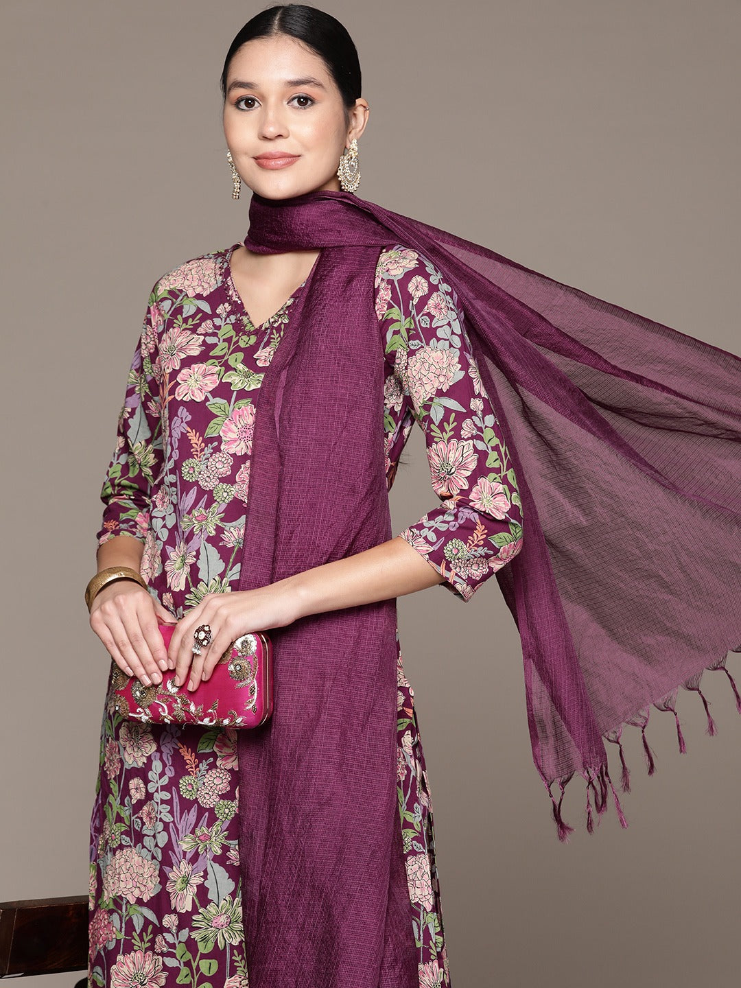 Straight Style Cotton Fabric Purple Color Kurta And Bottom With Dupatta