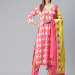 Straight Style Cotton Fabric Pink Color Kurta And Bottom With Dupatta