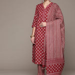 Straight Style Cotton Fabric Burgundy Color Kurta With Bottom And Dupatta