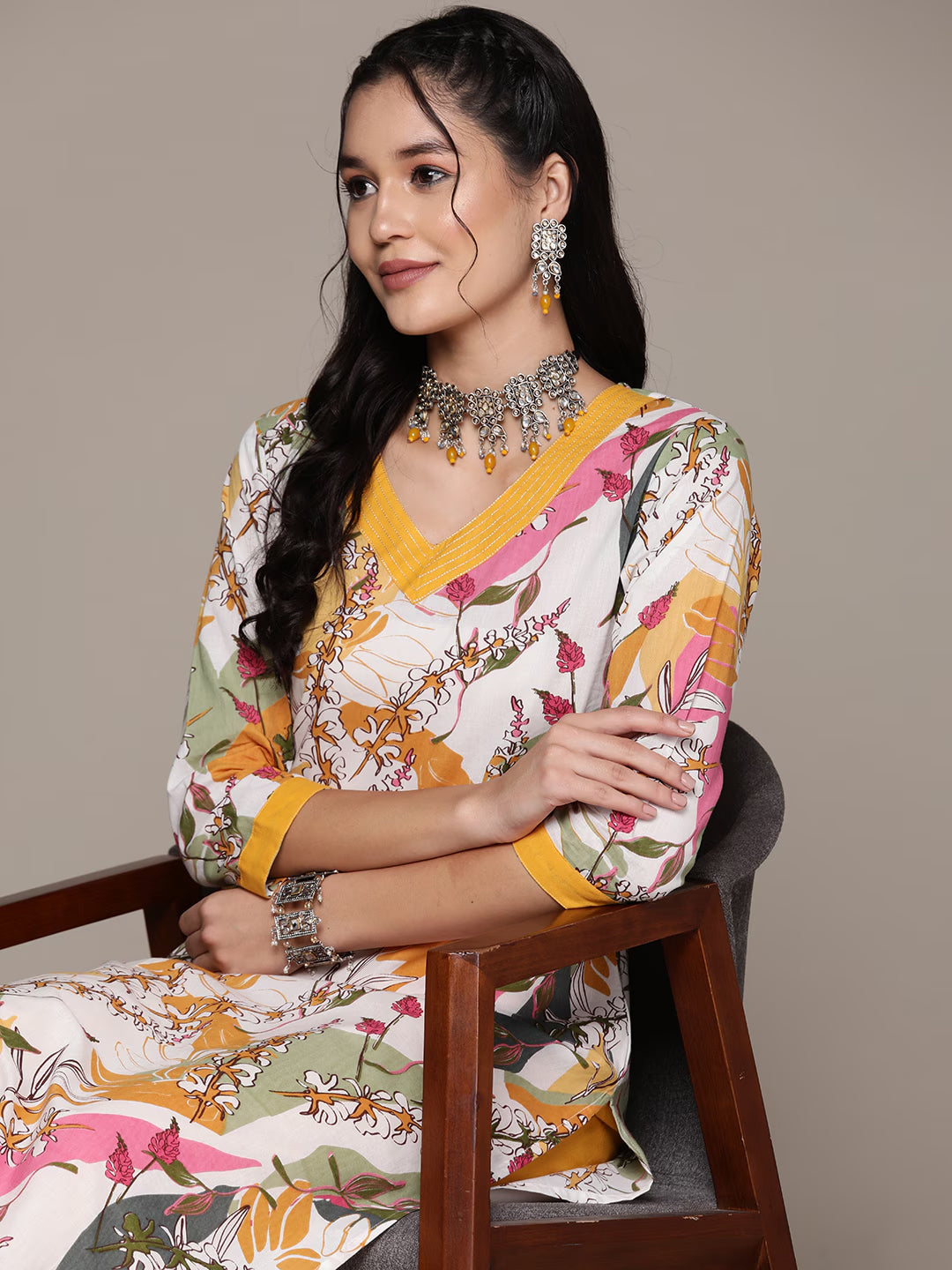 Straight Style Cotton Fabric Mustard Color Kurta With Bottom