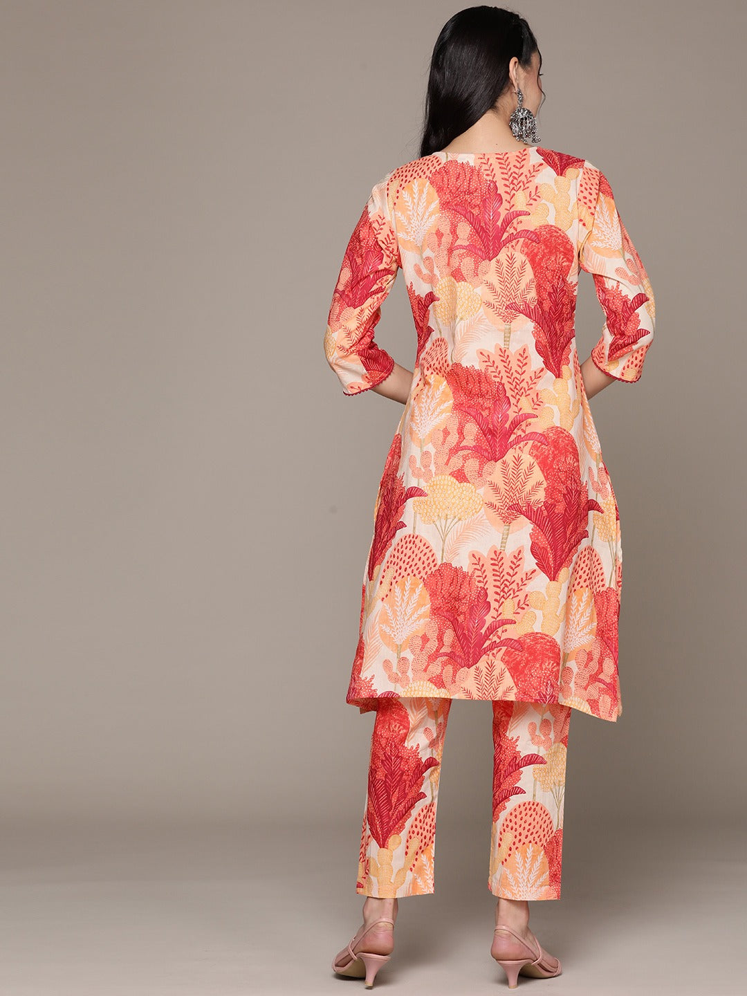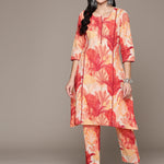 Straight Style Cotton Fabric Orange Color Kurta With Bottom