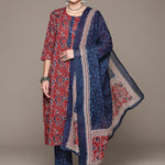 Straight Style Cotton Fabric Maroon Color Kurta With Bottom And Dupatta