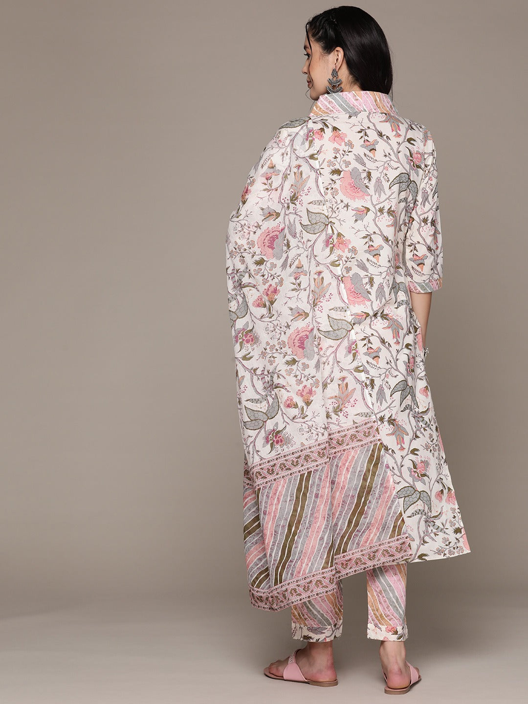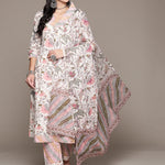 Straight Style Cotton Fabric Cream Color Kurta With Bottom And Dupatta