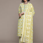 Straight style cotton fabric Yellow color kurta with Bottom and dupatta
