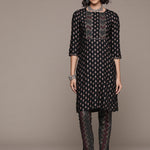 Straight style cotton fabric Black color kurta with Bottom