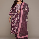 Plus Size Straight style cotton fabric Violet color kurta with Bottom and dupatta
