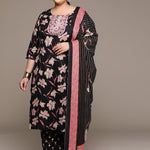 Plus Size Straight style cotton fabric Black color kurta with Bottom and dupatta