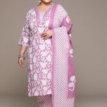 Plus Size Straight style cotton fabric Mauve color kurta with Bottom and dupatta