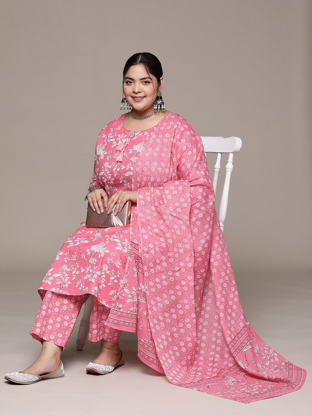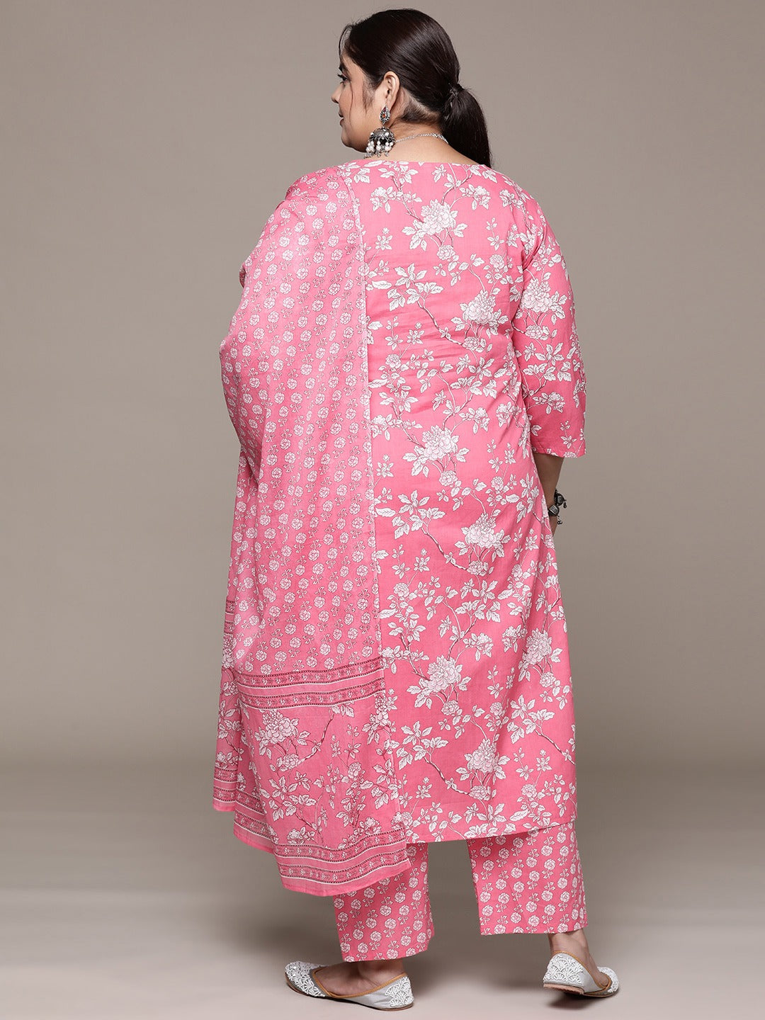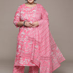 Plus Size Straight style cotton fabric Pink color kurta with Bottom and Dupatta