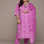 Plus Size Straight style cotton fabric Purple color kurta with Bottom and Dupatta