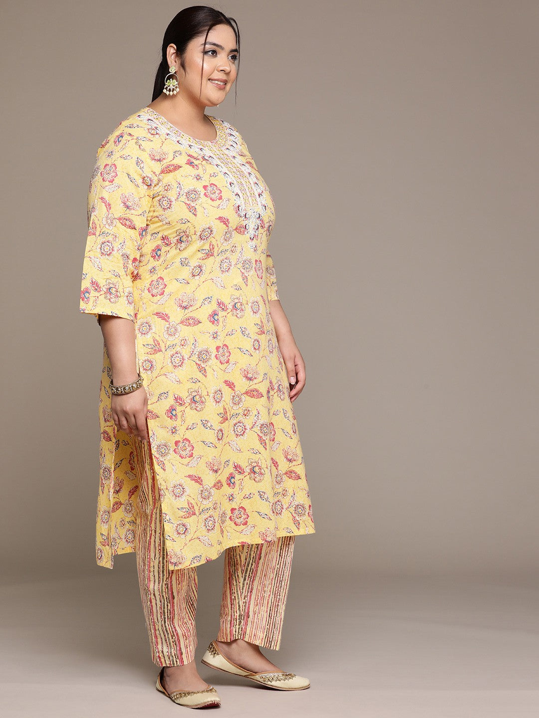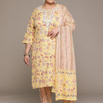 Plus Size Straight style cotton fabric Yellow color kurta with Bottom and Dupatta