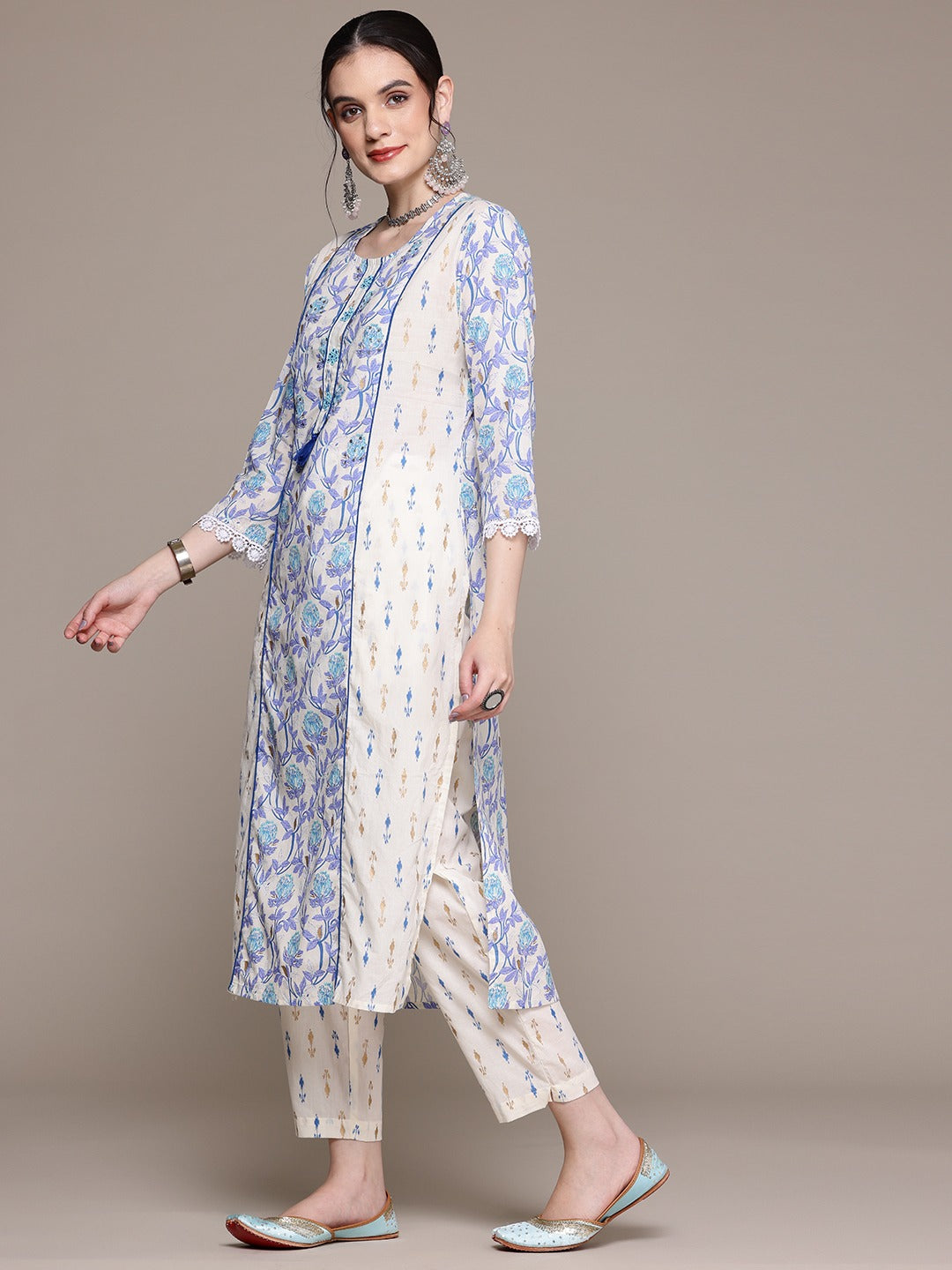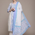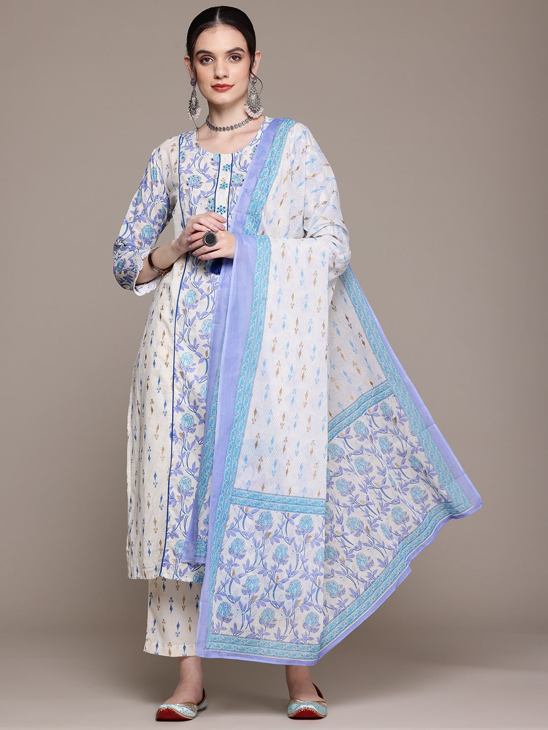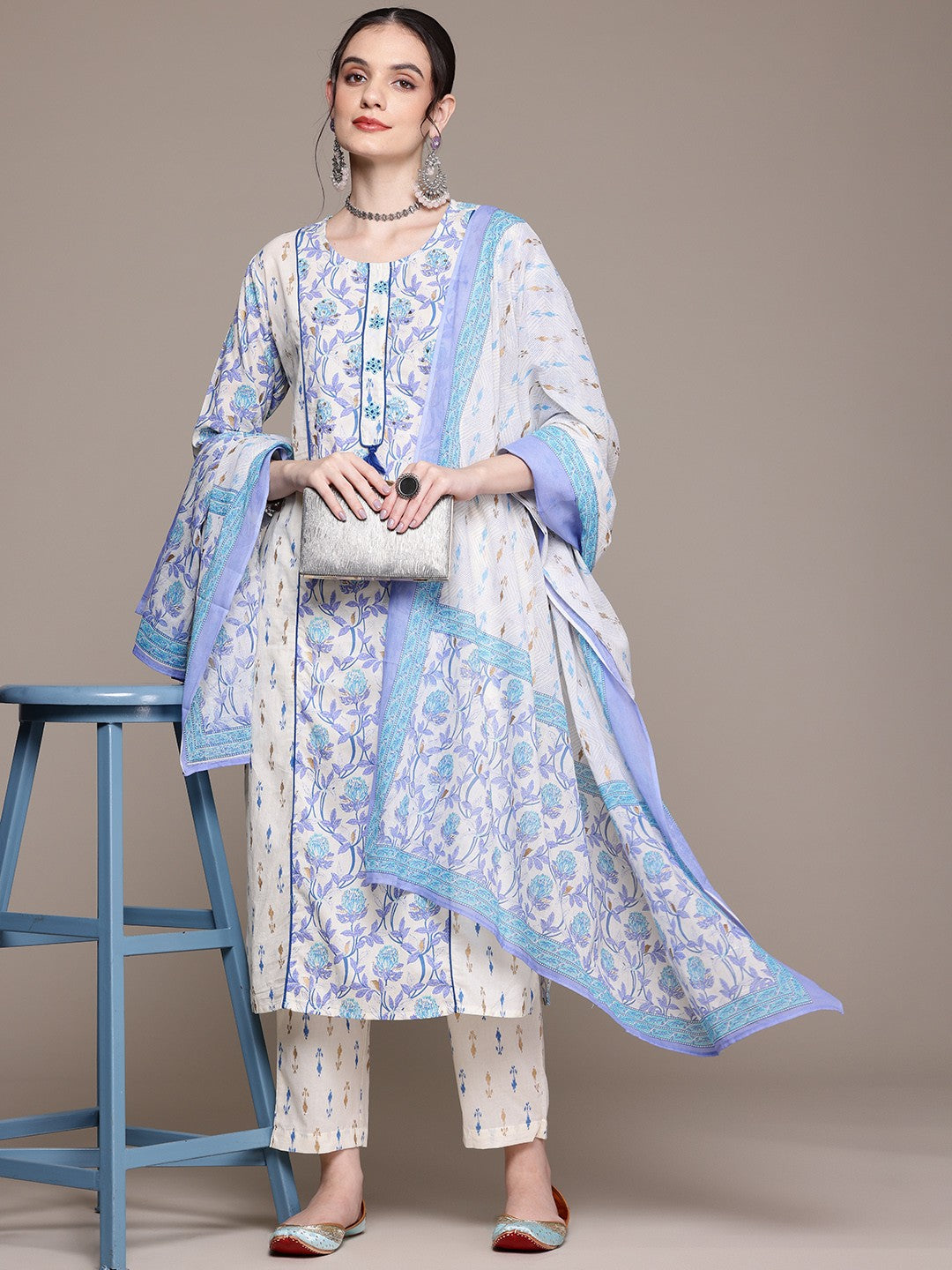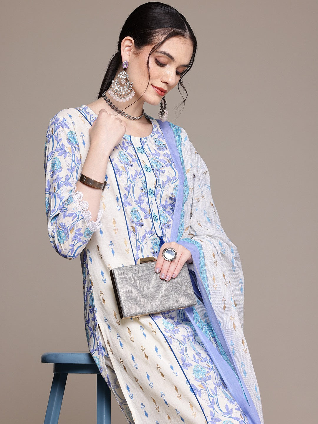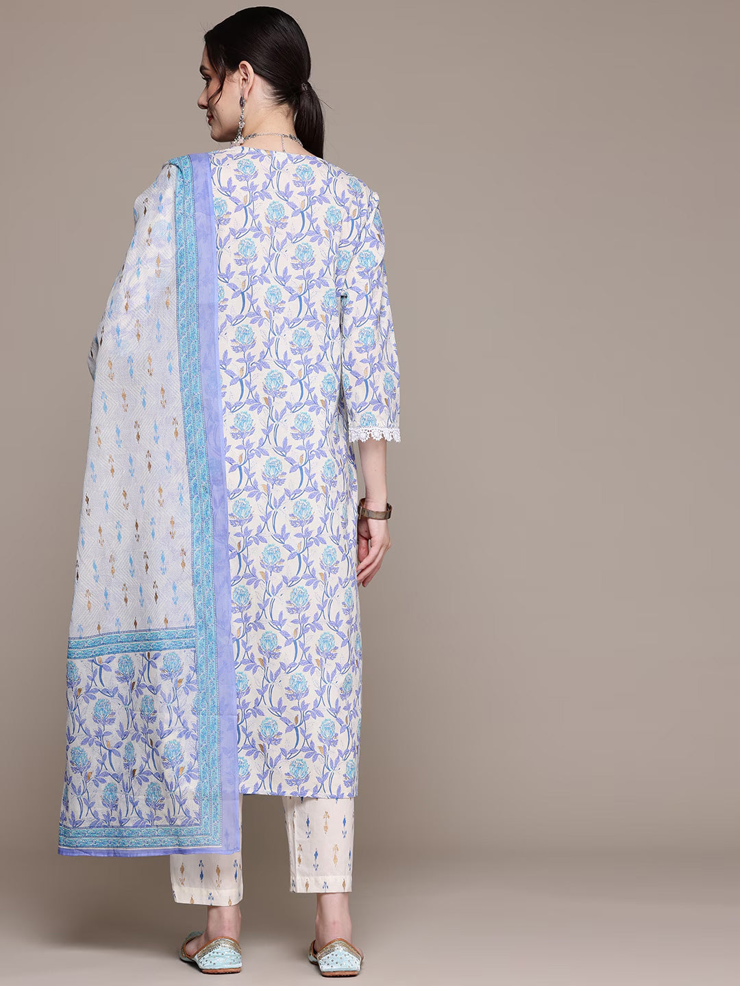 Straight Style Cotton Fabric Purple Color Kurta With Bottom And Dupatta