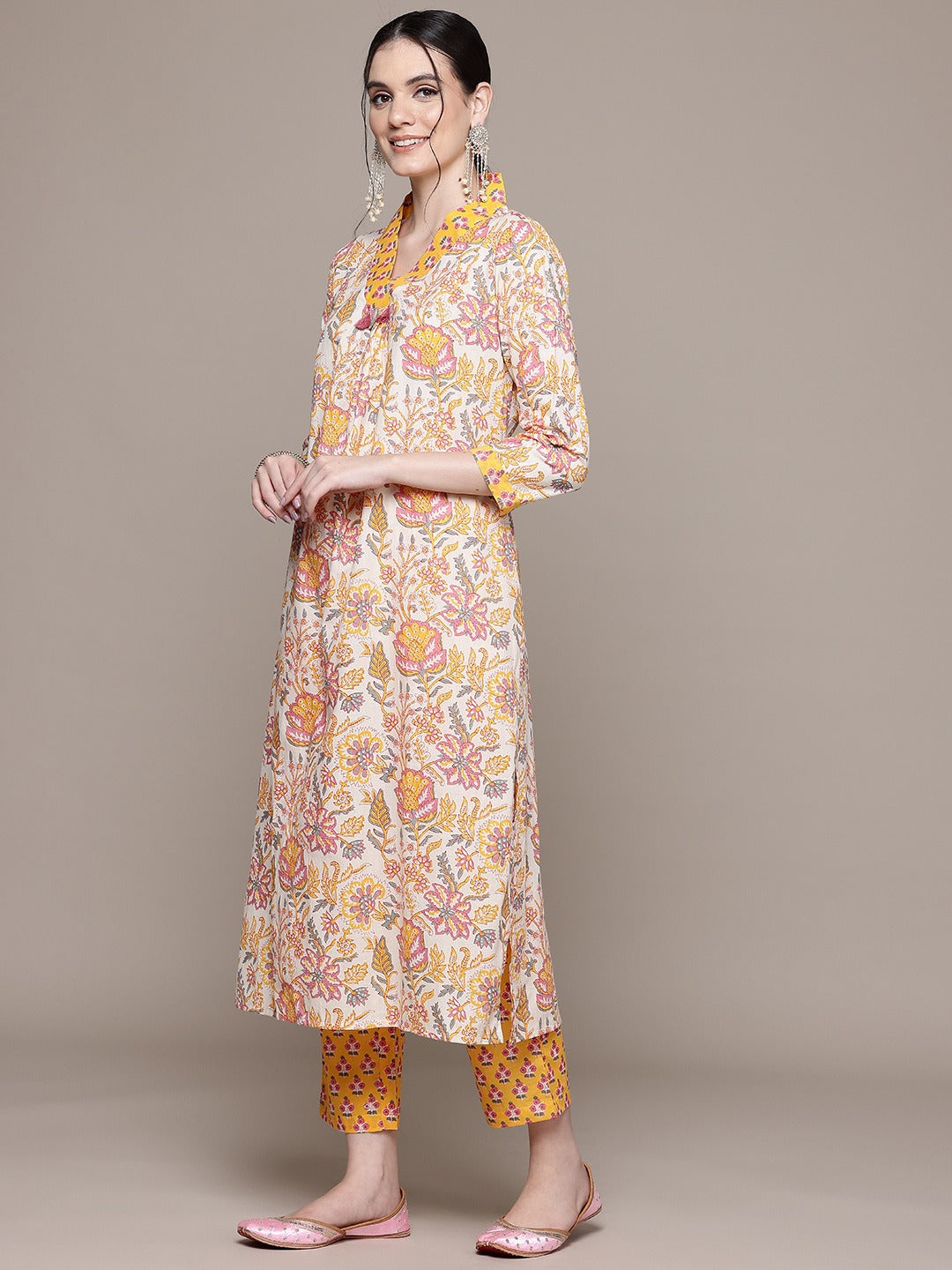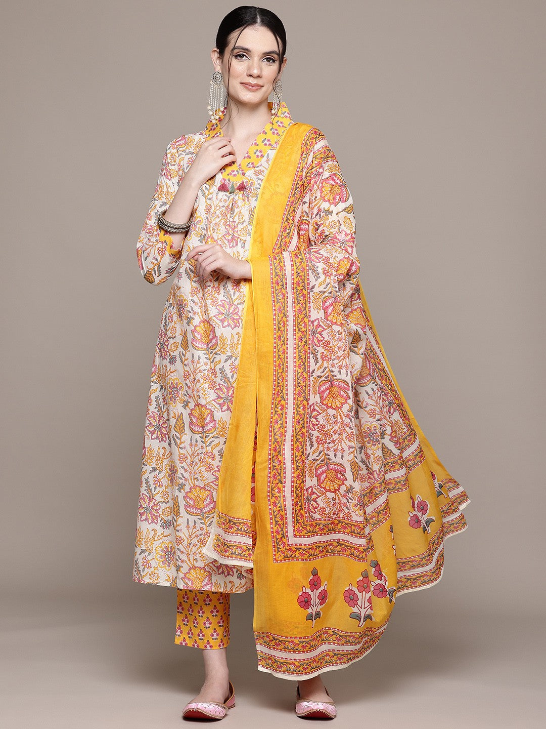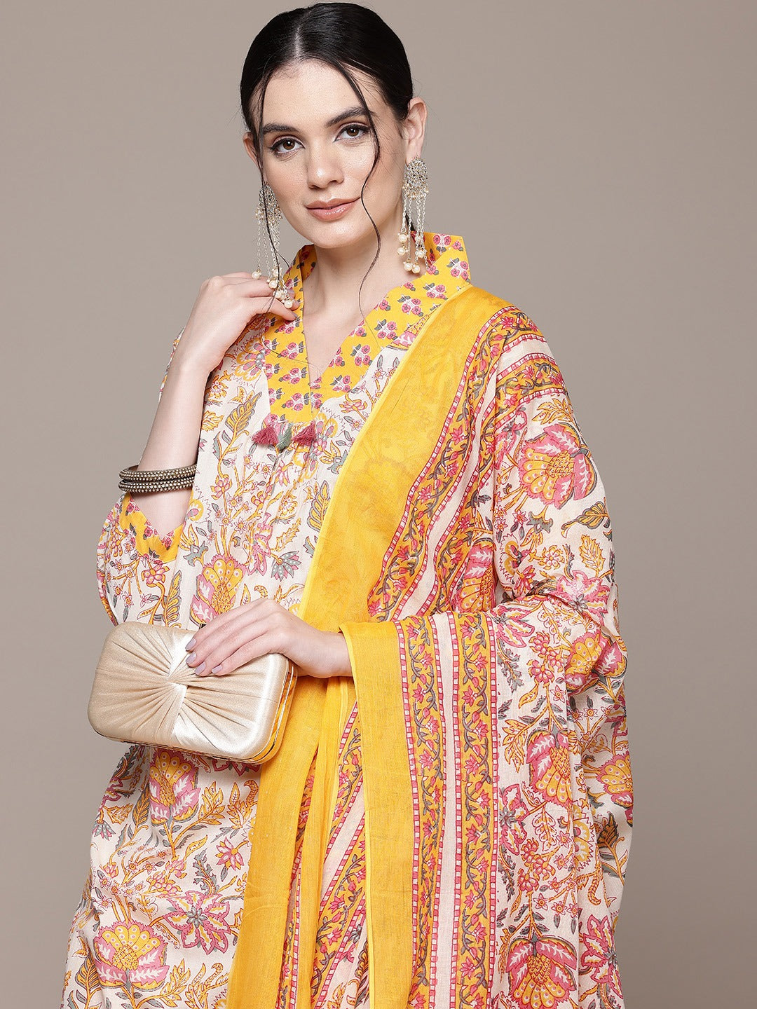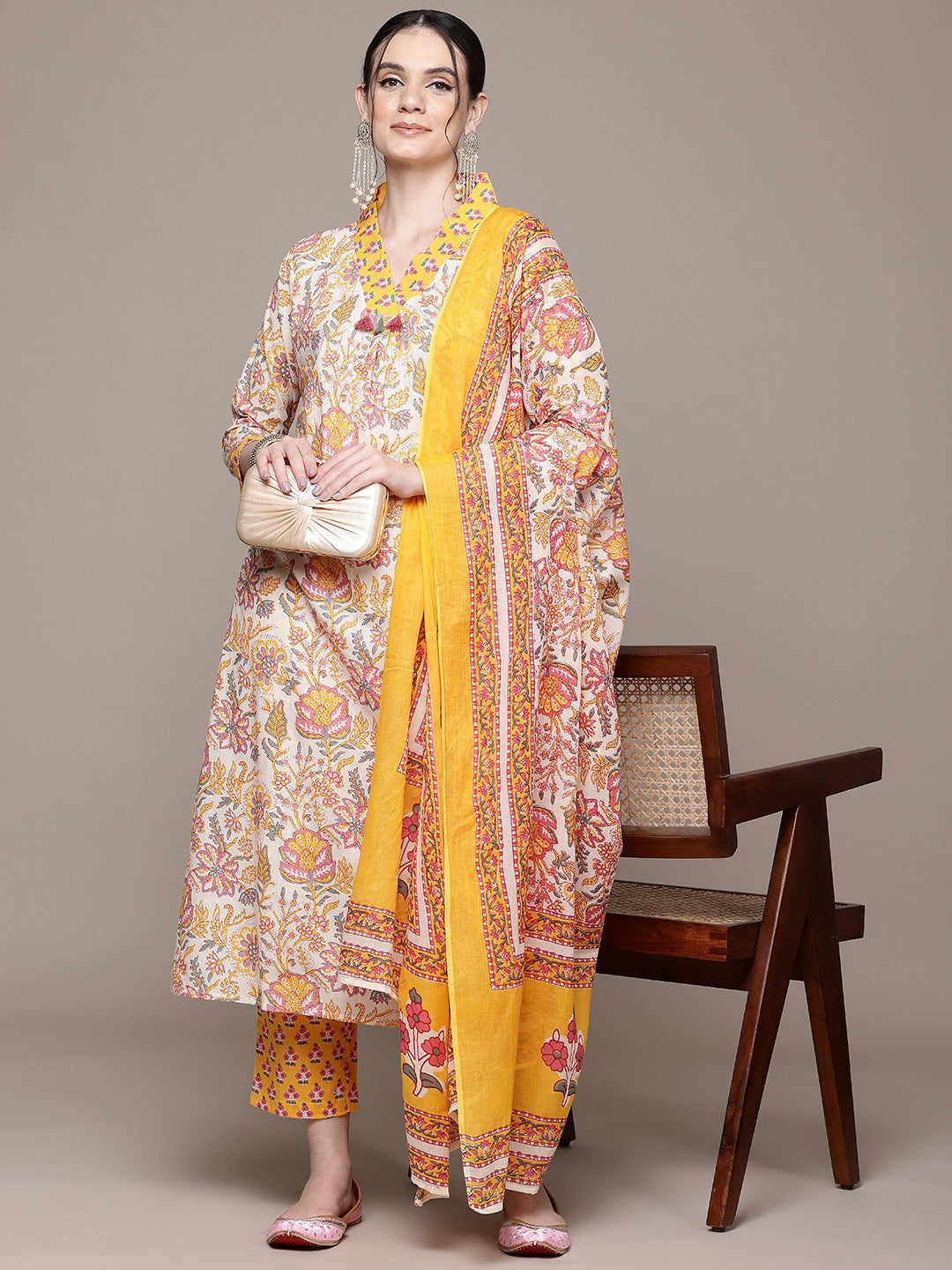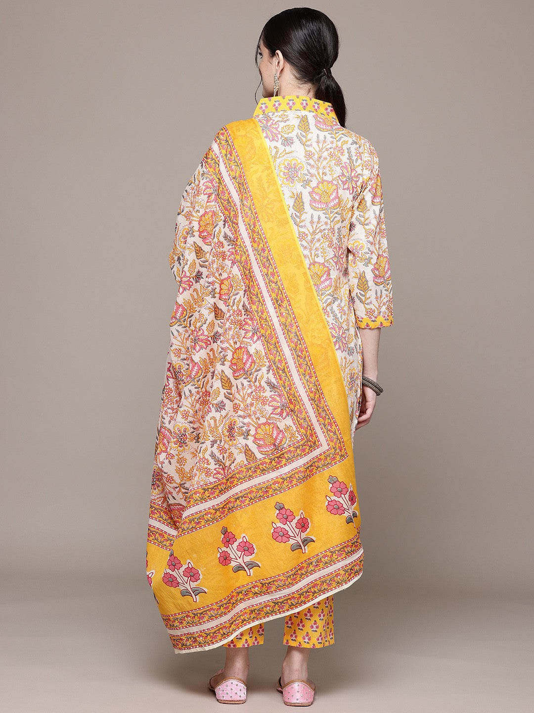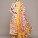 Straight Style Cotton Fabric Yellow Color Kurta With Bottom And Dupatta