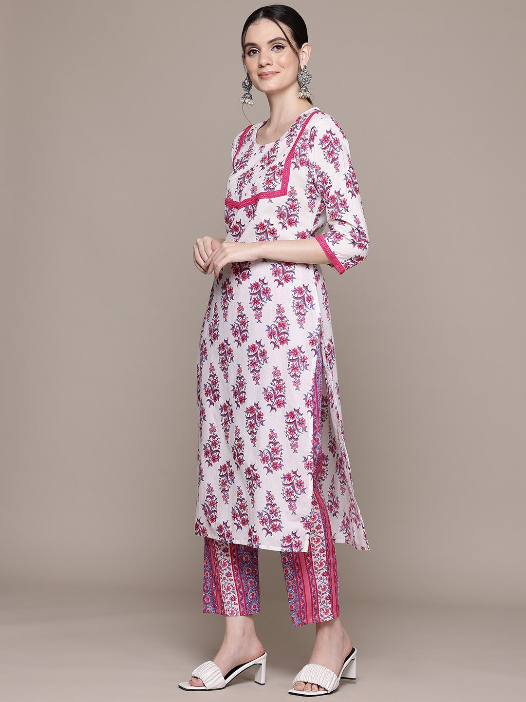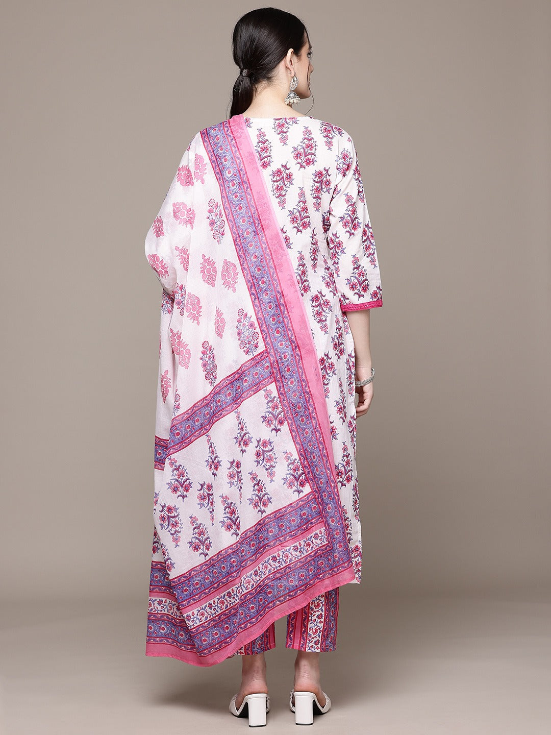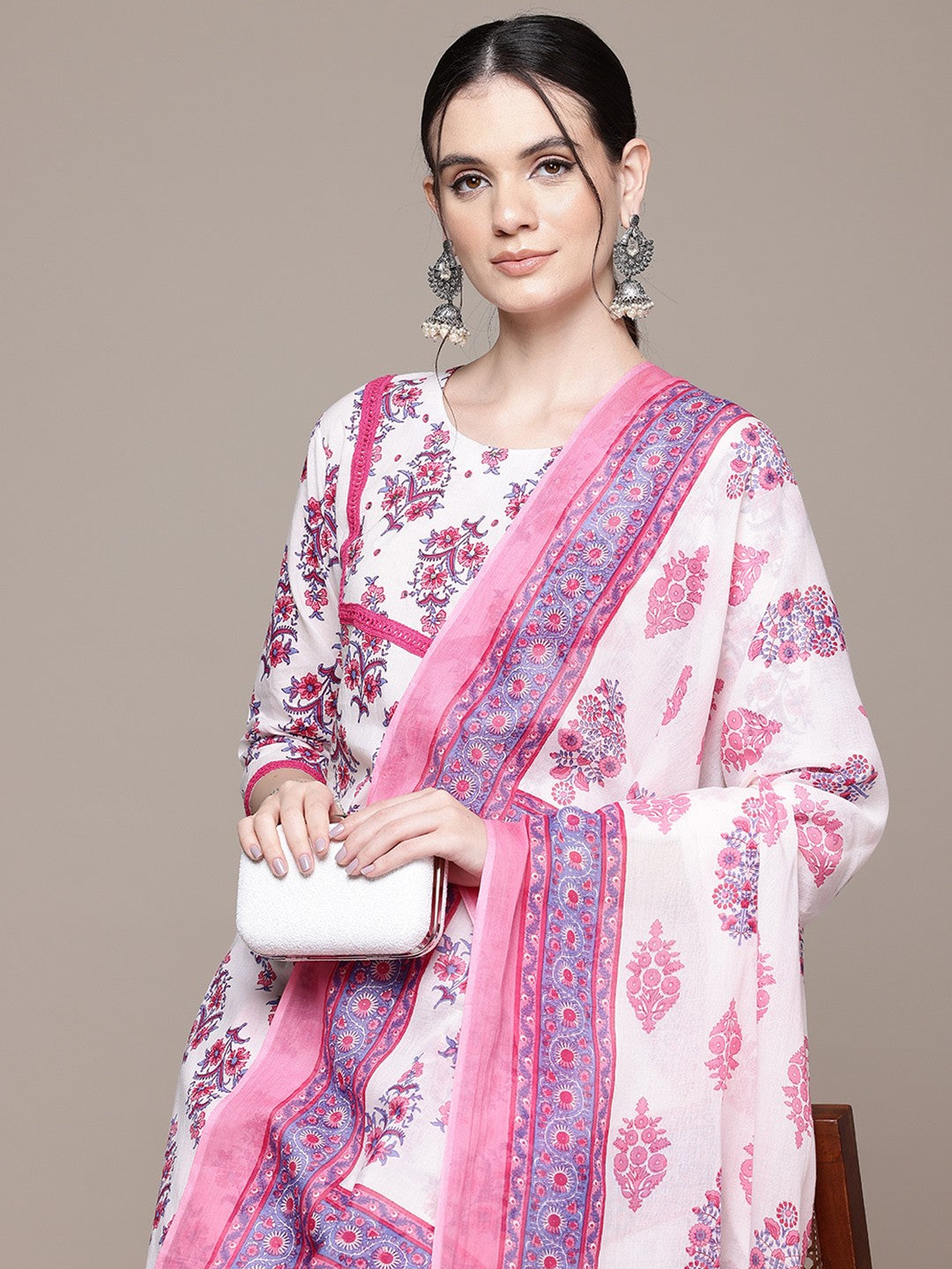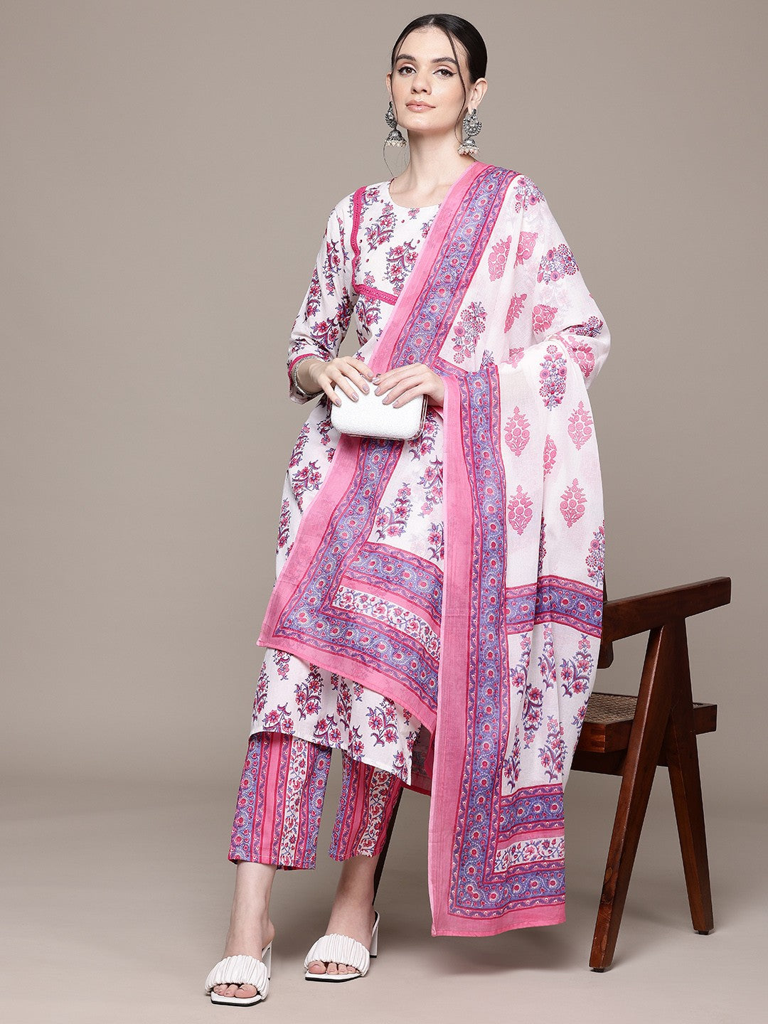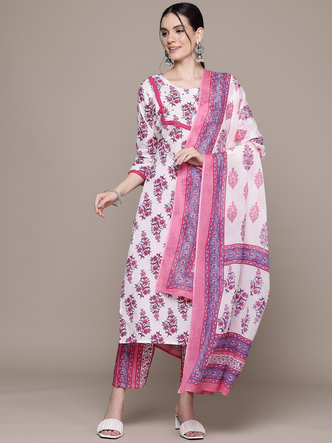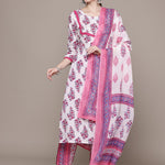 Straight Style Cotton Fabric Pink Color Kurta With Bottom And Dupatta