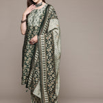 Straight Style Silk Fabric Green Color Kurta With Bottom And Dupatta